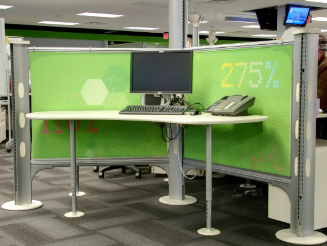 The open office has reduced the ability to use wall surfaces for messaging and display. Many furniture manufacturers will print customer’s own image (COI) for integration into their systems, and image selection takes the place of material selection. Color and pattern, symbol and iconography, can reinforce enterprise identity and competencies. Depreciation schedules for furniture often differ from those costs associated with tenant fit-up and construction — which creates some added flexibility in budgeting brand expression.