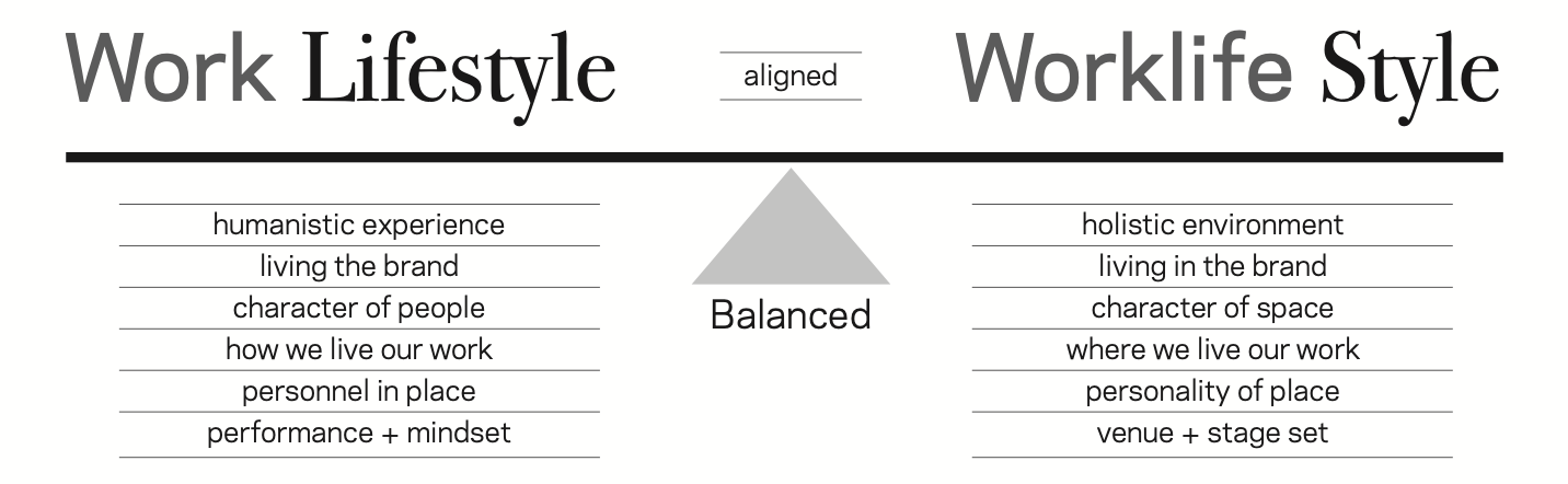 With environments as the new media vehicle, the experiential opportunity becomes: make competencies visible, culture tour-able, and workscape promotional.Spatial strategy tied to desired cultural behaviors and reflective of enterprise vision. Desired culture is reinforced. Past evidenced and understood. Present delineated and actionable. Future anticipated with known direction. Settings unified by story expressed by art + artifact, pixels + bits, and strategized as experiences.